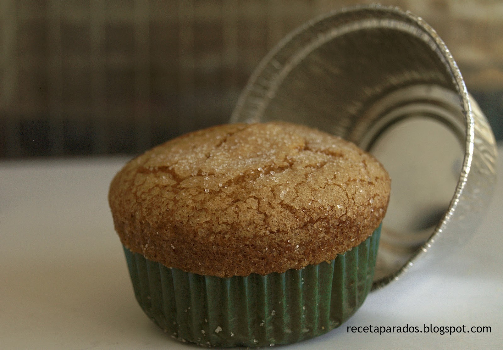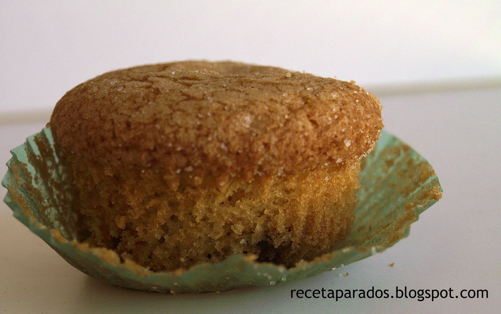Como algo opcional, podemos espolvorear con azúcar la superficie de cada magdalena con ayuda de una cucharilla, lo que hará que se forme una costra en el copete y quedarán aún más ricas.