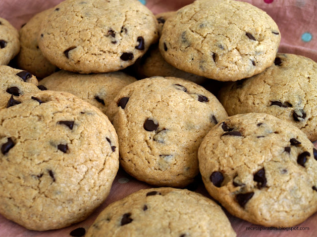 Llevaba mucho tiempo queriendo hacer estas galletas, pero me daba mucha pereza. Y no es porque cueste mucho hacerlas, sino porque las recetas que buscaba de las auténticas galletas Cookies americanas estaban en inglés y me resultaba muy engorroso traducirlas, sobre todo en el tema de las cantidades.