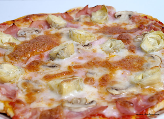 El caso es que en casa hemos hecho la interpretación personal de la pizza "caprichosa" que suelen tener estos restaurantes "italianos" de la manera más fiel que hemos podido. Aquí va.