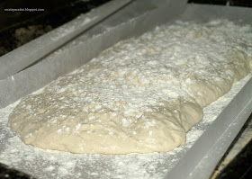A si que me puse manos a la masa, y al final salió un pan chapata, que para ser el primero, creo que no está nada mal. Eso sí, en el proceso estuve un par de veces al borde del desquicie porque la masa tiene vida propia, y así pasó, que al final acabó con una forma un poco irregular. Pero teniendo en cuenta que "ciabatta" significa literalmente zapatilla, igual no estaba tan desencaminado mi pan y hacía honor a su nombre, eso sí, zapatilla del número 50 por lo menos.