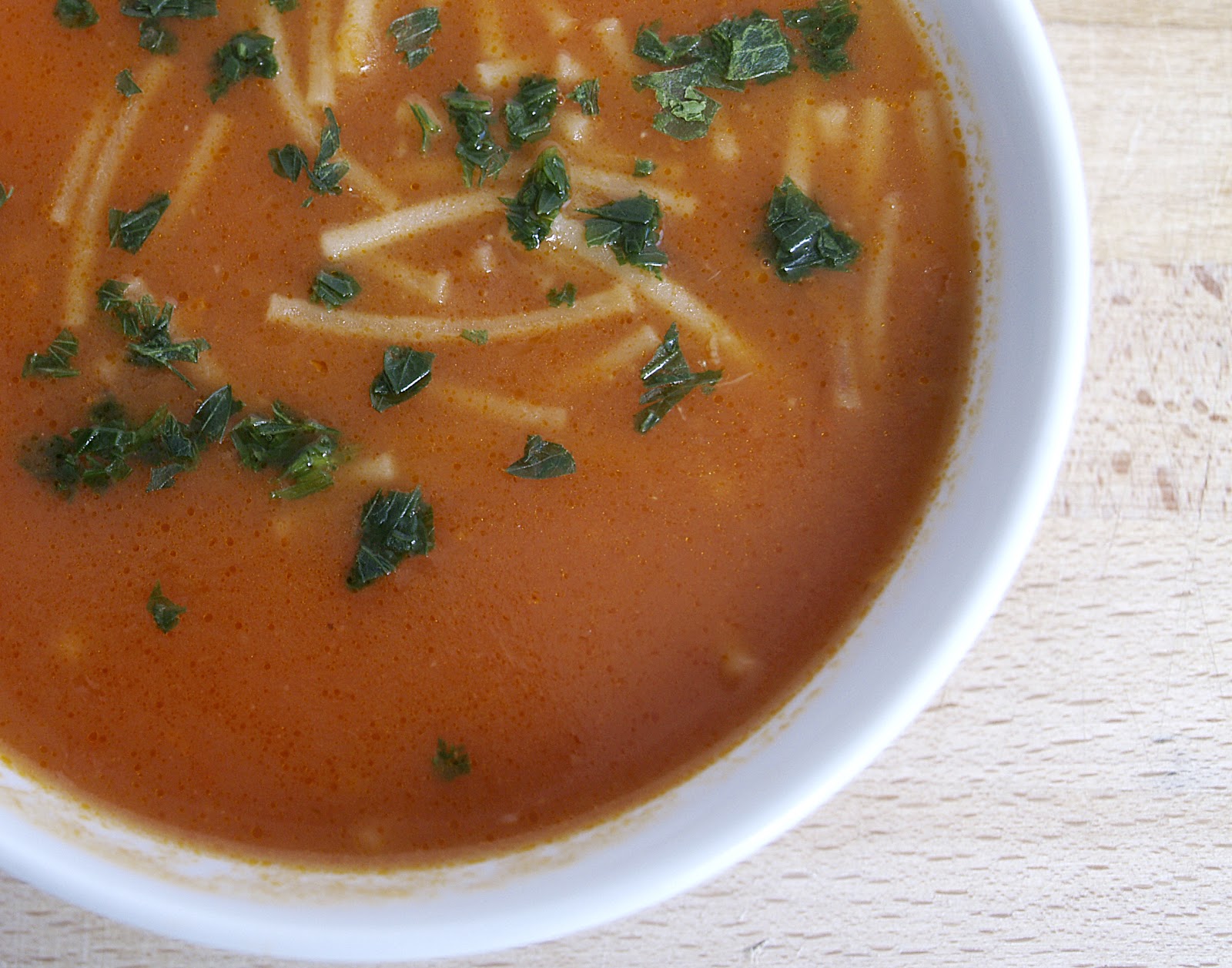 Para cocinar sopa de fideos fritos con tomate para dos personas vamos a necesitar: